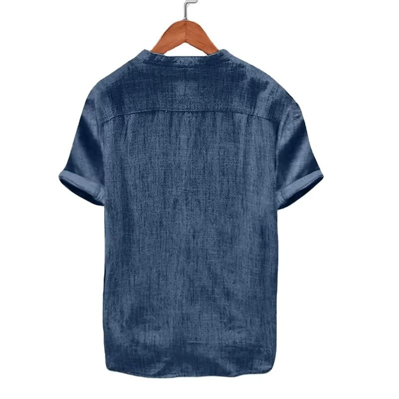 High Quality Solid Color Button up Shirt Fasion Mens Short Sleeve Cotton Linen Shirts image